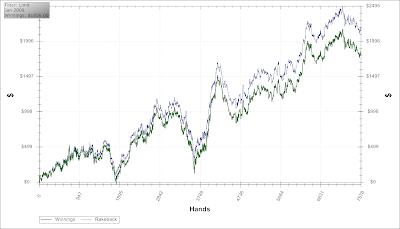 I had a pretty good January, especially considering how few hands I put in. I obviously ran really well (especially at heads-up). However, I think my game has really improved a lot over the last little while (thanks a ton to my coach BigBadBabar from 2p2/DeucesCracked). The main strategy help I got from involved 3betting the SB from the BB and capping HU in position. Most of the improvements, however, have simply been psychological as I have a much better approach to the game now. I generally play fewer tables than I used to, don’t check my results during a session (generally), and am trying to implement a daily stop-loss.